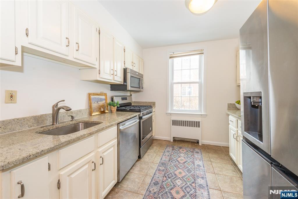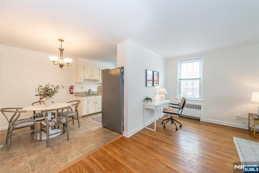 Welcome to this bright and inviting first-floor corner unit offering the perfect blend of comfort, charm, and convenience. This well-maintained 1-bedroom, 1-bath condo features beautiful hardwood floors, generously sized rooms, and abundant natural light from multiple exposures. The spacious living room provides an ideal setting for relaxing or entertaining and includes a flexible home office area perfect for remote work or study. The eat-in kitchen features ample cabinetry, granite countertops, stainless steel appliances, and a dedicated dining area, creating a functional and stylish space for everyday living. The large bedroom offers two closets for excellent storage, while the full bathroom includes a tub/shower combination. Additional highlights include 1 car parking, storage room and laundry in basement. Ideally located less than a mile from vibrant downtown shops, restaurants, and parks, this home is also under a mile from the Bay Street Station, providing convenient direct service to NYC.
